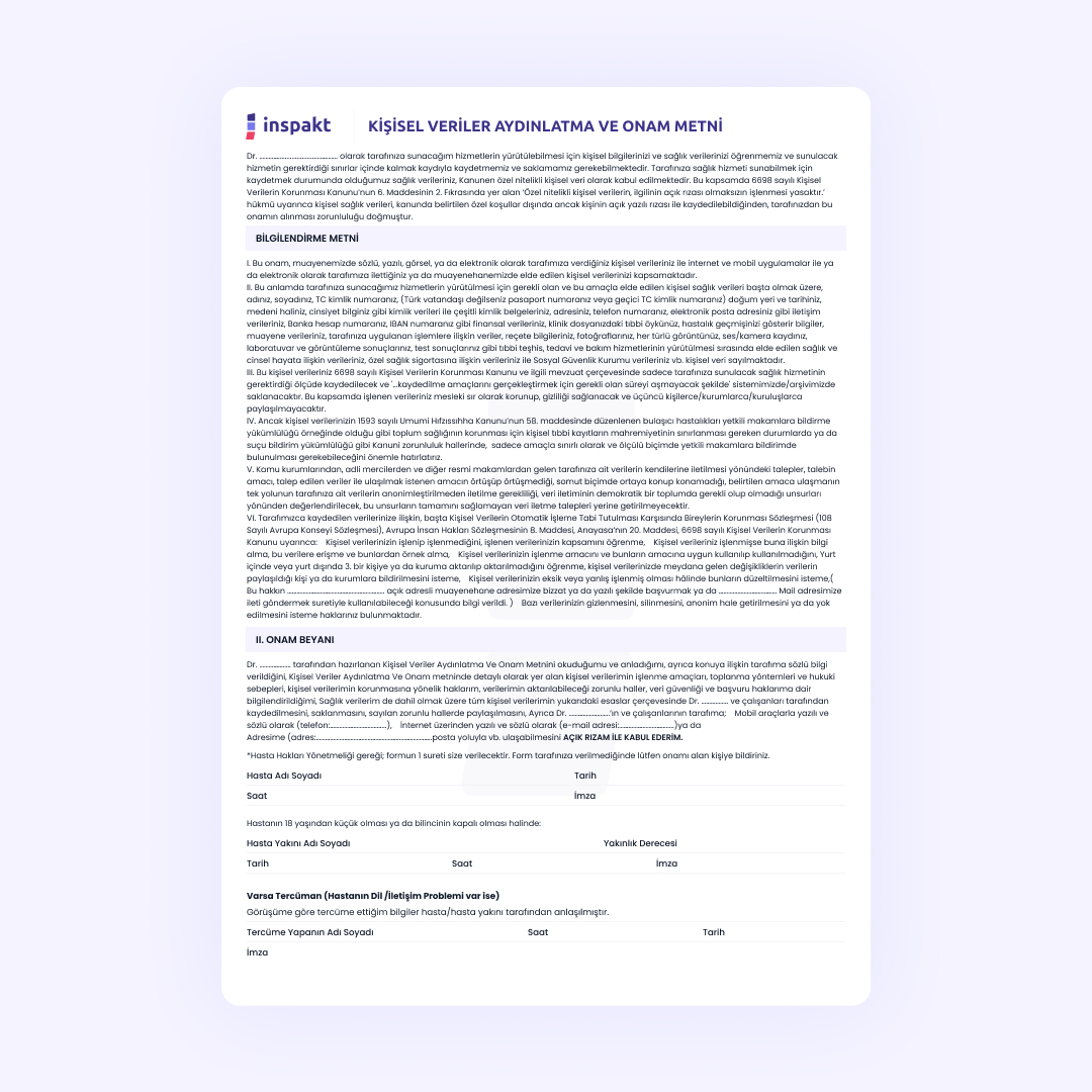 Inspakt ile hasta onam formlarını dijitalleştirerek, süreçleri hızlandırabilir ve daha güvenli