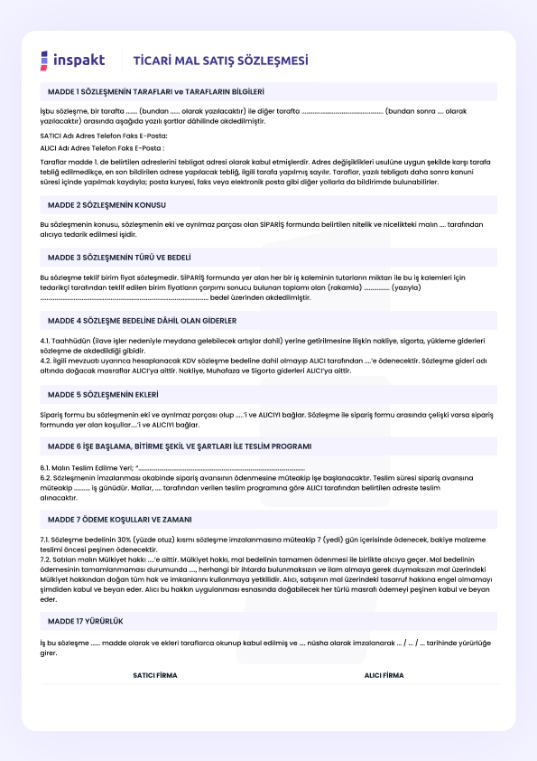 Bir ürün veya hizmetin satışını düzenleyen, alıcı ve satıcı arasında yapılan anlaşmadır.