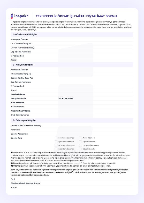Müşteri tarafından bankaya belirli bir işlem için talimat vermek amacıyla kullanılan bir belgedir.