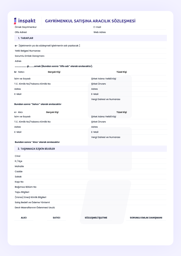 Bu sözleşme, gayrimenkul satışında aracılık hizmeti veren firmalar ile müşteriler arasında yapılan, hizmet detaylarını ve şartlarını belirten resmi bir belgedir.