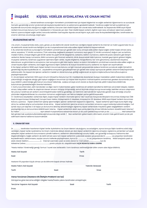 Hastaların kişisel ve sağlık bilgilerinin gizliliğini koruma amacıyla hastanın rızasını almak için kullanılan bir belgedir.