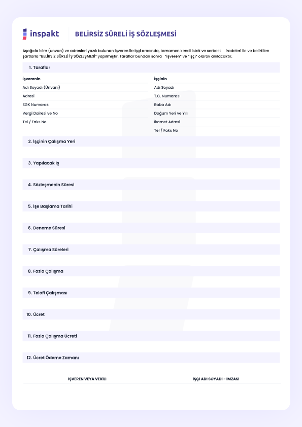 Yeni işe alınan çalışanların kimlik, iletişim ve iş başlangıcıyla ilgili bilgilerini toplamak için kullanılan bir formdur.