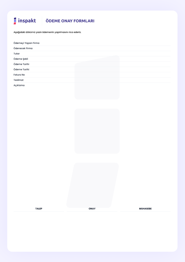 Müşterilerin veya çalışanların ödeme işlemlerini onaylamak için kullandığı belgelerden oluşur.