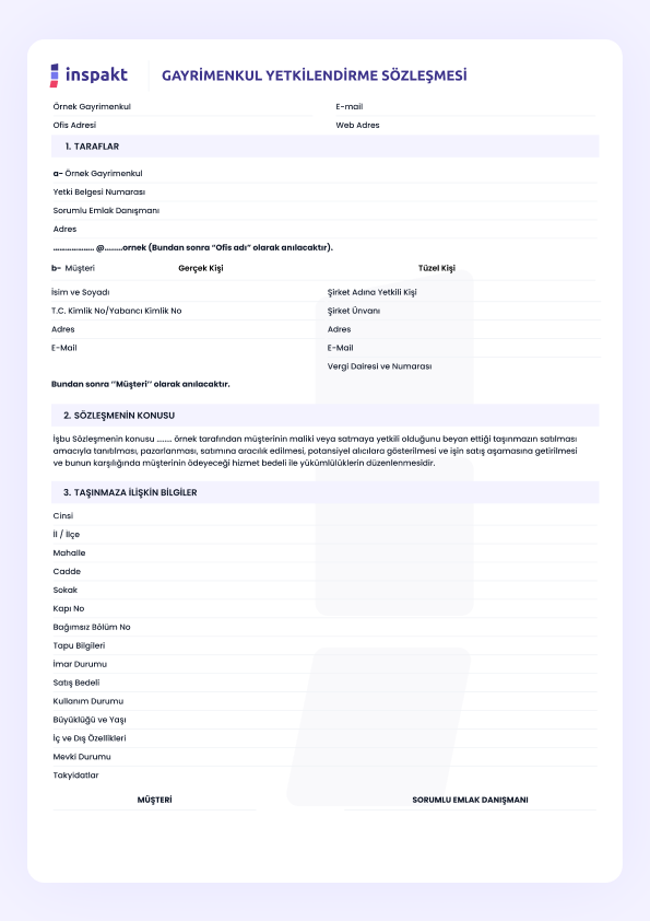 Gayrimenkul işlemleri için bir tarafın diğerine belirli yetkiler verdiğini gösteren yasal bir sözleşmedir.